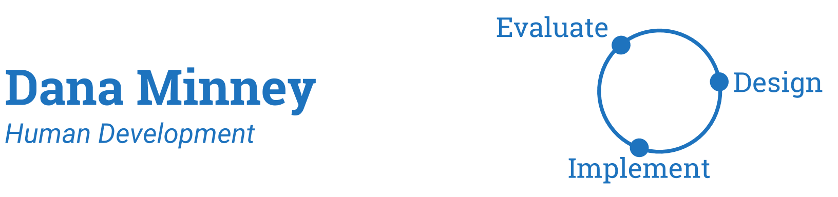Dana Minney has seven years experience as a data leader conducting program evaluation in education and the non-profit sector, and ten years as a consultant using coaching and project management tools to work with individual clients and teams. Dana brings a passion for enabling positive change for all students, caregivers, organizations, and communities by applying and sharing tools to identify and measure developmental goals. She continuously advocates for equity-focused change and was awarded a More Just World scholarship for her doctoral study on equity-focused, data-informed decision-making at St. Edward’s University. Earning a master’s degree in Human Development and Family Studies with a Program Evaluation concentration initiated the transition into K12 education where she currently applies research methods, insights, and analysis to inform and report on district improvement efforts. Since then she has earned a doctorate in Organizational Change and Leadership in Higher Education. Other career highlights include a multi-year field study on social and emotional learning in after school care that resulted in two publications: one in the Journal of Youth Development, and one in a graduate level textbook, Social and Emotional Learning (SEL) Assessment in After-School Care: How Accessible Evaluation Can Lead to Widespread Quality. Additional publications and knowledge products may be viewed by clicking on Portfolio.